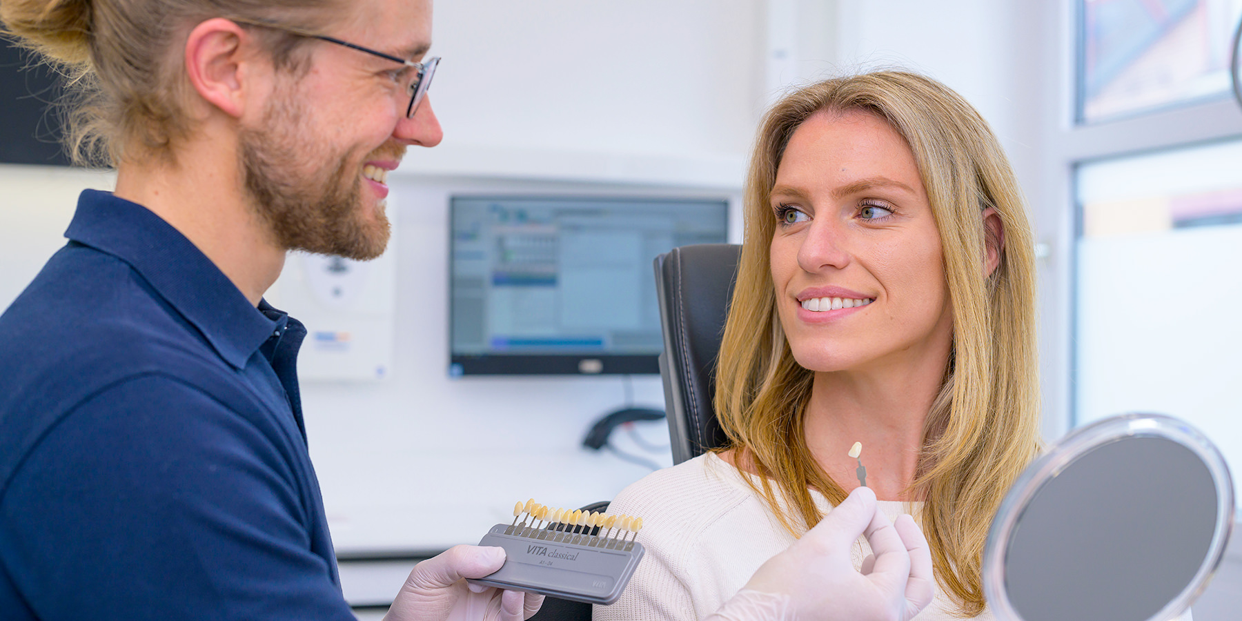 Gerne besprechen wir gemeinsam mit Ihnen das gewünschte Ergebnis und beraten Sie umfassend und professionell dazu, welche Form von Veneers für Sie in Frage kommen. Die Korrekturen Ihrer Zähne können wir Ihnen vorab am Modell oder im Mund simulieren, um Ihnen das mögliche Behandlungsergebnis frühzeitig zu zeigen.